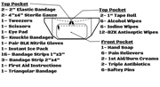 - First Aid Tools & Accessories (e.g., tape, scissors, tweezers, gloves, safety pins, ice pack, instruction sheet)