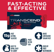 Transcend 15g Glucose Gel is a rapid and effective way to raise blood sugar levels, designed for people with diabetes, paramedics, and high-performing athletes. Made with pure glucose, this gel works faster than candy, soda, juice, or other sports gels to provide the energy boost you need when you need it most.