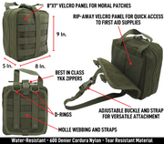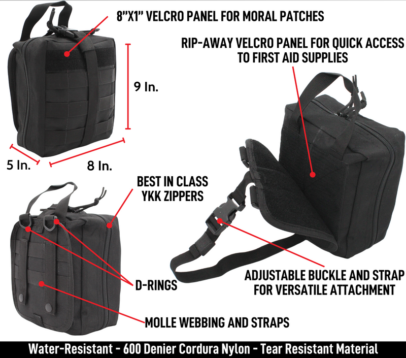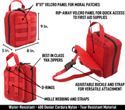 - Rapid Access Design: Features a detachable main pouch that connects to a Velcro-backed panel, allowing for quick removal and deployment of supplies during time-sensitive situations.