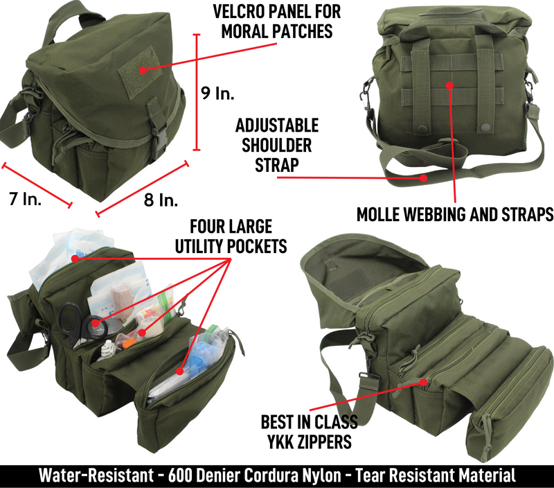 Quick-Access Tri-Fold Design: The innovative tri-fold bag opens wide to display four organized internal compartments, allowing you to quickly find the supplies you need in a moment of urgency.